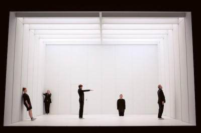 Düsseldorf, 29. Juni 2021. Natürlich ein White Cube. Wohin anders soll man auch ein Stück über Kunst setzen – das nicht von Yasmina Reza ist. Minutenlang verharren die fünf Performer still darin, bis sie sich krümmen, ihre Körper zu zittern beginnen, sie husten und auf den Boden fallen, als sei eine fremde Macht in sie gefahren. "I am the space within a space within a space" röhren Alloy Mental zu harten Techno-Bässen, während die Performer in Formationen auf und ab rasen, aneinander vorbei, nach vorne und hinten, sich nie berührend – eine kraftvolle, treibende und fließende Choreografie.