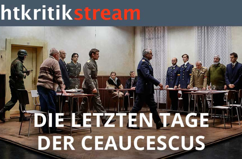 24. Februar 2021. 2009/10 begründete Milo Rau mit der Inszenierung "Die letzten Tage der Ceaucescus" seine ästhetische Praxis des Reenactments historischer Schlüssel-Ereignisse im Theater. Nach akribischer Recherche stellten Rau und sein International Institute of Political Murder (IIPM) mit einem Team von 16 Schauspieler*innen die Aburteilung und Hinrichtung des Ehepaars Ceausescu am ersten Weihnachtstag 1989 nach. Das Projekt hatte einen Prozess des letzten lebenden Sohnes des Diktatorenpaars gegen das IIPM zur Folge. Wegen dieses Prozesses wurde der Film, der aus der Inszenierung entstand, bisher erst selten gezeigt. Im Rahmen der Milo-Rau-Werkschau "School of Resistance" läuft er nun am 24. Februar um 19 Uhr auf der Webseite der Akademie der Künste Berlin (AdK) und hier im Nachtkritikstream – im Anschluss gibt es noch ein Diskussionspanel.