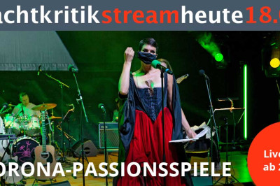 28. November 2020. Noch bis 18 Uhr zeigen wir die "Corona-Passionsspiele" im Nachtkritikstream. Im ersten Lockdown im Frühjahr inszenierte Nicolas Stemann die "Corona-Passionsspiele" als Online-Serie in elf Folgen. Zwischen Lockdown und Sommerpause wurden sie Ende Juni im Schauspielhaus Zürich auf die Bühne gebracht. Im Nachtkritikstream gibt es nun eine Aufzeichnung des szenischen Konzerts zu sehen.