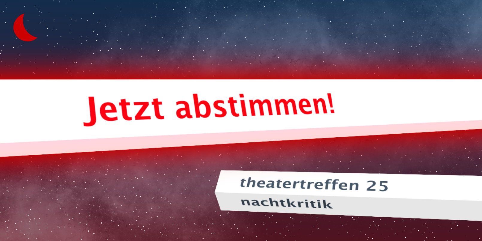 15. Januar 2025. Der Countdown läuft: Nur noch bis Mitternacht ist noch Zeit für die Publikumsabstimmung! Unsere Autor*innen haben ihre Lieblingsproduktion der Theatersaison 2024 aufgestellt. 42 Stücke insgesamt. Welche haben Sie gesehen, welche kriegen Ihre Unterstützung? Zehn Favoriten des nachtkritik-Theatertreffens 2025 werden gekürt.