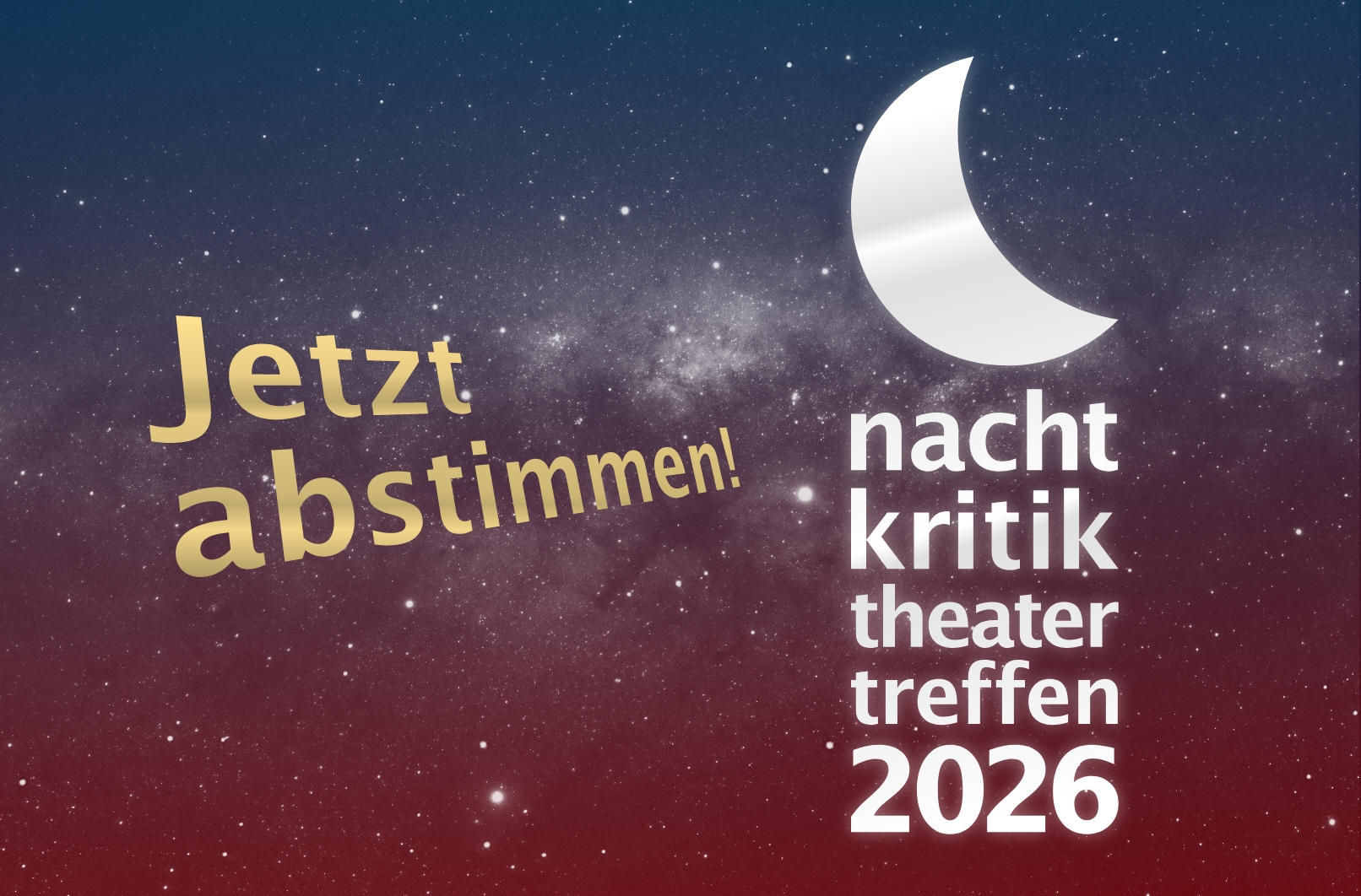 5. bis 8. Januar 2026. Das nachtkritik-Theatertreffen präsentiert 35 Top-Stücke der Saison 2025. Welche der Arbeiten haben Sie gesehen, welche kriegen Ihre Unterstützung? Zehn Favoriten des nachtkritik-Theatertreffens 2026 werden gekürt.