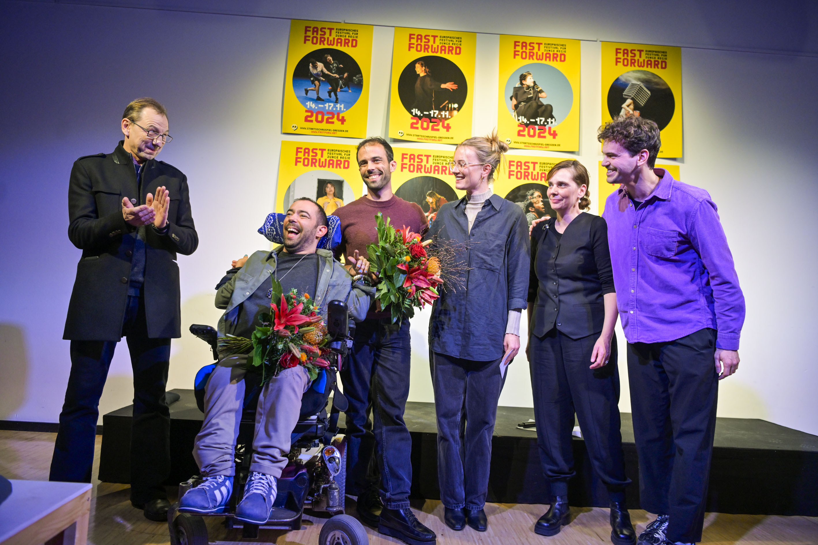 18. November 2024. Im Rahmen von Fast Forward – Europäisches Festival für junge Regie am Staatsschauspiel Dresden sind am Sonntagabend die Preise verliehen worden. Die Festivaljury zeichente die belgischen Theatermacher Guillaume und Clément Papachristou für ihre Inszenierung "Une tentative presque comme une autre (Ein Versuch, fast wie jeder andere auch)" mit dem Hauptpreis aus. Dieser besteht in einer Regiearbeit am Staatsschauspiel Dresden.