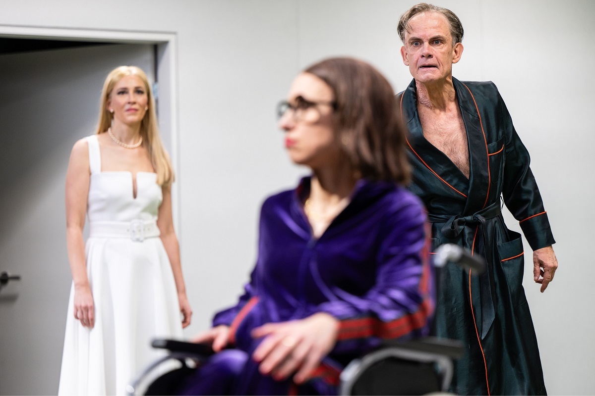 Kušej nimmt Bernhards Figuren ernst. Er verzichtet auf comedyhafte, lächerlich machende Übertreibungen, setzt vielmehr auf die zwischentonreiche, entlarvende Sprache Bernhards. Die Spannung ist enorm, die das Ensemble auf der Bühne entfaltet – sprachlich wie körperlich. Therese Dörr spielt Clara, die querschnittgelähmte Schwester im Rollstuhl und wehrloses Opfer der Demütigungen und menschenverachtenden Fantasien ihrer Geschwister. Auch wenn Clara oft passiv und zum Zuhören und Beobachten verdammt ist oder sich beim Lesen "linker" Zeitungen aus ihrer Zwangslage wegdenkt: Es ist spürbar, warum die beiden anderen sich allein durch ihre Blicke getriggert fühlen.