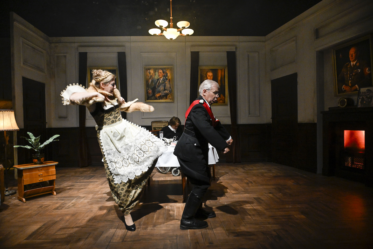Thorsten Weckherlin, Intendant des Tübinger Landestheaters, hat das Stück um den ehemaligen SS-Offizier und KZ-Kommandanten Höller, der im Nachkriegsdeutschland unbehelligt Karriere als Gerichtspräsident machen konnte, auf der Werkstattbühne seines Hauses inszeniert. Vinzenz Hegemann hat dafür ein naturalistisches Bühnenbild gebaut: Die jährliche Geburtstagsfeier für Höllers Idol Himmler findet in einem biederen Wohnzimmer der 1970er statt – mit Röhrenradio, dunkler Holzvertäfelung, Hammond-Orgel, Filbinger-Porträt an der Wand, später folgen Himmler und Kiesinger.