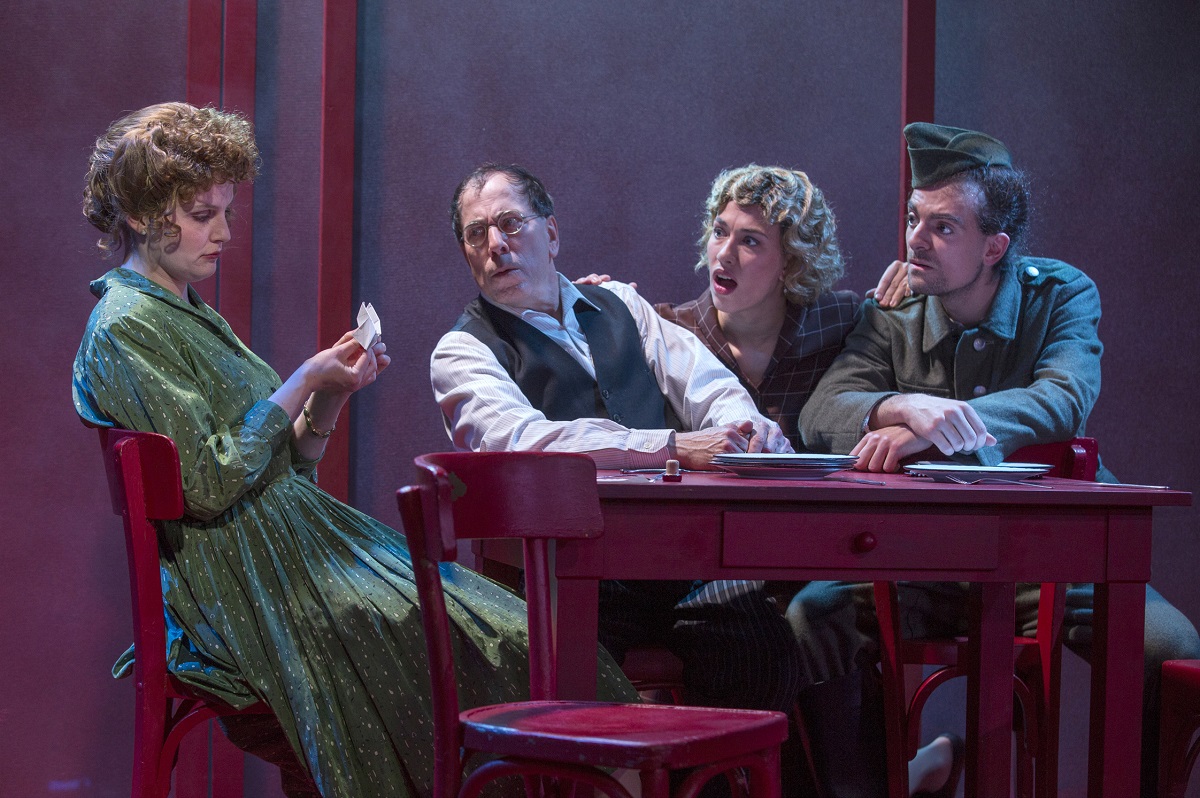 Peter Kampschulte, Lena Plochberger, Alexandra Ebert, Etienne Moussou spielen auf der Bühne von Aylin Kaip © H. Dietz Fotografie