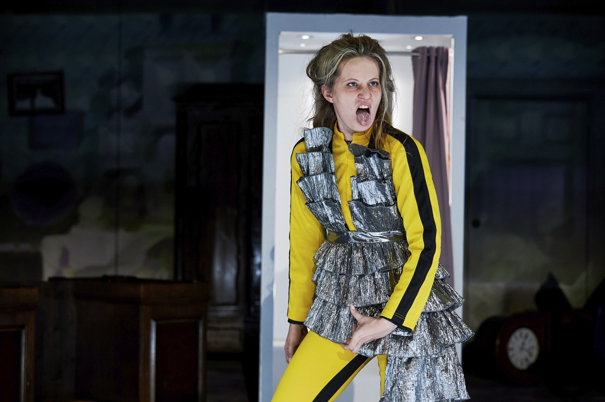 Zwischen den nie endenden Ansprüchen ringt die Protagonistin um Deutungshoheit. Das Haus erklärt sie für besetzt, die Möbel werden auf den Kopf gestellt. Mit Miss Pearce verschwindet sie knutschend im Schrank. Eliza, drängt sie, ihre Kraft für eigene Zwecke einzusetzen. Die Haushälterin sinnt auf Rache an Higgins und Doolittle, Eliza soll sie als Clowns bloßstellen. Der Plan: Sie heiraten! Das ging jetzt alles etwas schnell in der Musical-Duett-Performance des "Lieds der bitteren Erkenntnis".