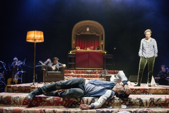 Klaro, man könnte Fünfe gerade sein lassen und sagen, hey komm, die Rechnung von Oliver Reese, der an diesem Abend Regie führt, geht auf: "Suche Karten"-Schilder gibt es ja nun auch nicht bei jeder Premiere; ein Fernsehteam des ZDF geisterte durch die Flure des Berliner Ensembles; ein Lokalblatt ließ sich vorab berichten, Stuckrad-Barre habe eine Probe besucht und sei "gerührt" gewesen (bei der Premiere war er dann allerdings nicht zu sehen, mindestens nicht beim Schlussapplaus). Das Premierenpublikum erklatschte sich eine Zugabe ("Plan B" von Udo). Und überhaupt ist es schön, dass zwei Jahre, nachdem das Erfolgsmusical "Hinterm Horizont" abgesetzt wurde, wieder ein Udo-Lindenberg-Abend im Hauptstadt-Repertoire steht.