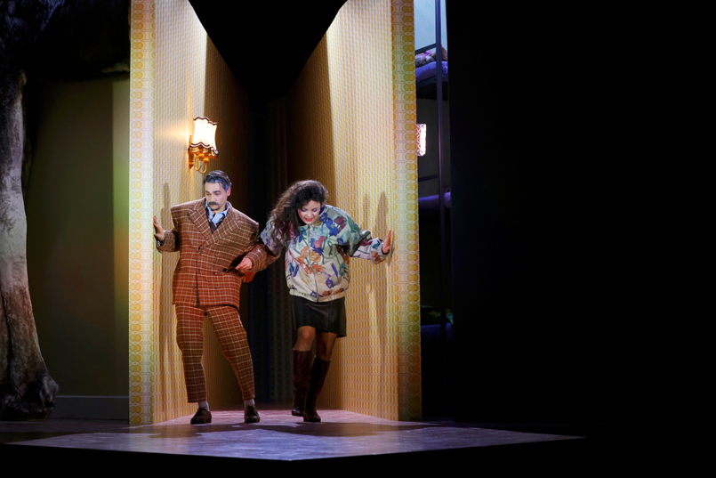 Die liebevoll gestalteten, aber gleichzeitig nicht zu aufdringlich symbolischen Kostüme im leicht verfremdeten Retro-Look (Miriam Marto) helfen den Spieler*innen dabei, ihre Figuren plastisch zu machen, beinahe zu plastisch. Außer Aysima Ergün und Marc Benner, die gekonnt komödiantisch zwischen verschiedenen Nebenrollen hin und herspringen, fallen sie immer tiefer in ihre Schicksale hinein, so dass sie am Ende weniger uneindeutig daherkommen als im Roman, was ein bisschen schade ist, aber nun mal eben auch ein Merkmal des Theaters der Gorki-Ära, von dem wir uns hier gerade verabschieden.