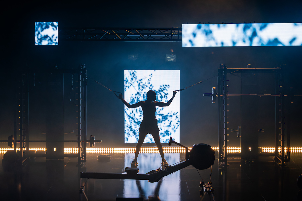 8. August 2025. In der Welt von Fitnessgeräten, Körpern und Maschinengeräuschen bewegt sich dieser Abend von Daniel Wetzel von Rimini Protokoll. Auf den Tonleitern der Selbstoptimierung geht es laut und manchmal auch erkenntnisstiftend zu.