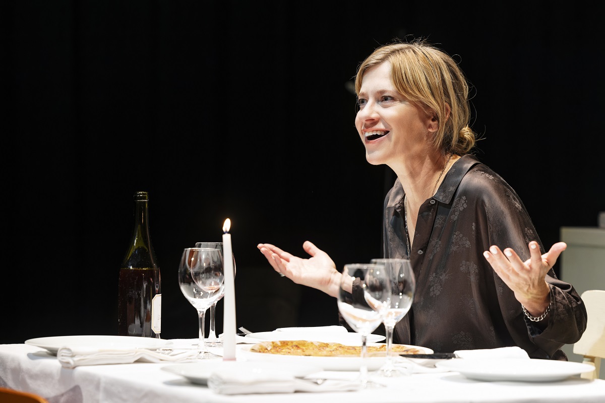 Ein Hauch von Yasmina Reza weht durch dieses Monodrama: Zunächst wird das Luxusleben der wohlhabenden Stände karikiert, man schlemmt beim "Italiener", alle sprechen ungebremst dem Alkohol zu, schnell fallen die Fesseln des guten Tons. Die Tischgesellschaft frotzelt und ätzt wonnig, und schließlich spitzt sich ihre Konversation in handfesten Wertekonflikten zu. In diesem Falle muss Julia erfahren, dass ihr Kris, mit dem sie in der Jugend noch einen Hang zur Anarchie teilte, inzwischen ein ziemlicher Schnösel geworden ist (Anwaltskanzlei-Inhaber mit einschlägig snobistischer Attitüde) – und vor allem AfD-Sympathisant.