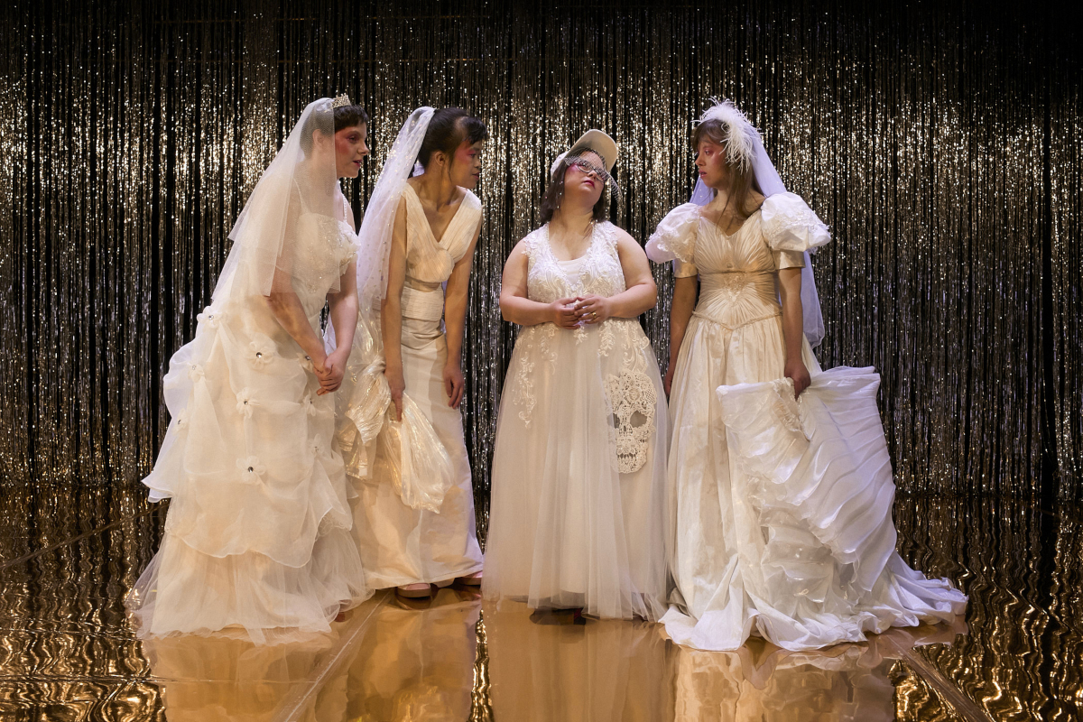 So unterschiedlich sind die individuellen Vorstellungen vom Glück. Für Frauen mit Behinderung sehen die gesellschaftlichen Stereotype aber oft immer noch ein Leben ohne Sex, ohne Kinder, ohne Selbstbestimmung vor. "Wer von euch stimmt der Aussage zu: Menschen mit Behinderung sind nicht begehrenswert?", fragt Hieu hart, aber herzlich ins Publikum, das in der Studiobühne des Theaters RambaZamba ganz dicht dran ist am Geschehen. Natürlich meldet sich niemand. Aber dann erwischen die Vier, die hier souverän durch eine Achterbahn-Dramaturgie leiten, ihre Zuschauer*innen doch noch an einem wunden Punkt: "Ich hab' gehört, dass Menschen ohne Behinderung den Schönheitsbegriff auf rein äußerliche Merkmale reduzieren", raunt Shirly ihren mittlerweile bunt statt weiß gekleideten Kolleginnen zu. "Kann doch nicht sein", entgegnet Rebecca mit großen Augen – und die eigene Reaktion wie die der Umsitzenden macht deutlich: ertappt.