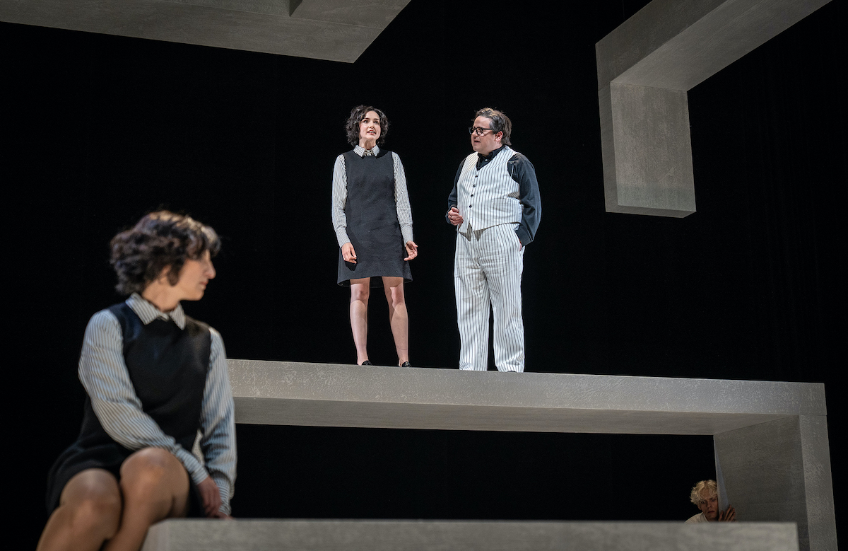 Wie schon fürs "Antigone"-Personal zu Saisonbeginn hat Sam Beklik zum Saisonende einen abstrakten Raum vor schwarzem Hintergrund entworfen, der mit Beton-Charme jede Heimatsehnsucht zurückweist, in diesem Fall aber mit (Lebens-)Pfaden ausgelegt ist. Da diese Pfade nicht geradeaus laufen oder sich verbinden, bedeutet Fortbewegen, dass die Schauspielerinnen klettern, hüpfen und immer wieder scharfen Kurven folgen müssen. Regisseurin Ebru Tartıcı Borchers lässt das Trio dabei höchst stilisiert hin und her schreiten. Wie Computerspielfiguren im Pausenmodus, aus dem sie dann wieder zu Monologen, Duetten oder chorischem Sprechen erwachen.