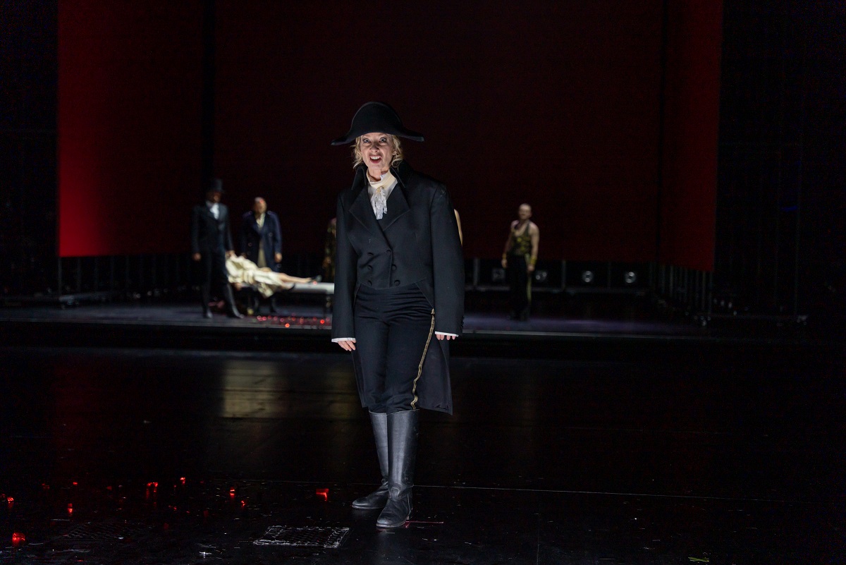 Karin Klein wird im zweiten Teil tatsächlich zum Feldherrn Napoleon, und entwickelt in der Rolle eine Phantasie über die Aufteilung der Welt, die gut zu den aktuellen Interessen von Russland, China und Amerika passt. Sebastian Schulze tritt gleich nach der Pause zum ziemlich ulkigen Duell mit der zentralen Figur Pierre an und scheitert im Finale als hingebungsvoller Kämpfer in der Schlacht bei Borodino; auch Laura Eichten, Sebastian Graf und Aron Eichhorn finden sich zurecht in episodische Profilen; und wir bekommen die Chance, den spielenden Figuren durchaus intensiver zu folgen als den Personen, die sie aus dem Roman herüber holen.