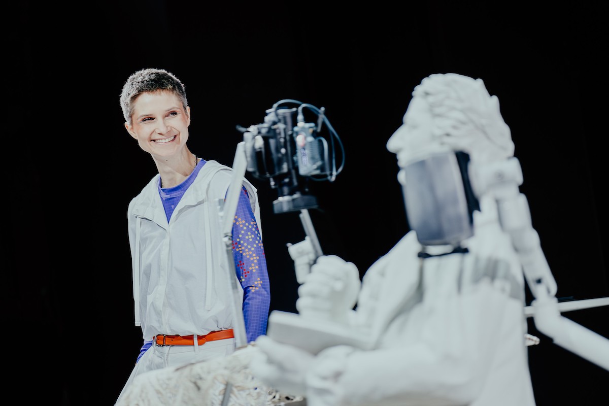Ursula Gärtner im technikfreudigen Erinnerungsspiel samt Schiller-Büste © Maximilian Borchardt
