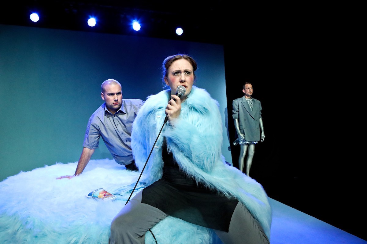 Die Preis-Jury vor zwei Jahren lobte "Helena oder Stay safe and sorry", weil es das Publikum mit der Frage nach "der adäquaten Reaktion auf die vielfältigen selbst produzierten Krisen" konfrontiere. Regisseurin Alina Fluck wählt einen anderen Schwerpunkt und nimmt die im Text angelegte, entschiedene Überzeichnung der Gegenwart zum Ausgangspunkt ihrer Uraufführung.