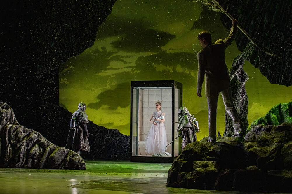 Die dramaturgischen Ausfälle, die in der Strichfassung begründet sind, können zum Teil durch das gelungene Bühnenbild kompensiert werden. Birgit Leitzinger, die auch für die Kostüme verantwortlich ist, hat eine apokalyptische Vulkanlandschaft geschaffen, in der steile Gesteinsformationen in die Höhe ragen. In verschiedenfarbiges Licht gehüllt, entstehen atmosphärische Bilder, in die sich auch die prächtigen Kostüme wunderbar einfügen.