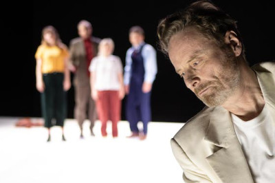 Münster, 21. Februar 2020. Väter werfen Schatten, stehen im Licht und verdunkeln diejenigen, die nach ihnen kommen. Martin Heckmanns' Vater Jürgen Heckmanns hat als bildender Künstler Figuren gestaltet, giacomettiartige Papiermenschen, deren Schatten ebenso zu ihnen als Kunstwerk gehören, wie ihre aus vergänglicher Materie gestaltete Form. Martin Heckmanns hat nun ein Requiem geschrieben für seinen Vater, nicht nur für ihn, für alle deutschen Väter seiner Generation. Aus dem Schatten dieses im letzten Jahr gestorbenen Künstlervaters ist der Dramatiker Heckmanns längst herausgetreten, so kann er souverän mit ihm umgehen. Der autobiographische Kontext ist in dem nun in Münster uraufgeführten Text spürbar, aber nicht dominierend.