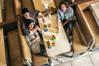 Düsseldorf / Online, 21. Juni 2021. Reihen von Restaurant-Tischen füllen Rocío Hernandez' Bühne. Auf jedem von ihnen stehen Plastikflaschen, eine in Rot, eine in Gelb und eine in Grün. Ein eher unscheinbarer Ort. Schließlich finden sich solche Tische mit Resopalplatten in unzähligen Cafés und Snack Bars überall auf der Welt. In Santiago de Chile, wo Guillermo Calderòns Inszenierung seines Stücks "Dragón" im Juni 2019 ihre Uraufführung feierte, ruft dieses Bühnenbild allerdings überaus konkrete Assoziationen und Erinnerungen hervor. Hernández hat mit ihm den Innenraum eines bekannten Restaurants am Plaza Italia rekonstruiert, das schon zu Zeiten der Militärdiktatur unter Augusto Pinochet ein Treffpunkt für Dissident*innen war.