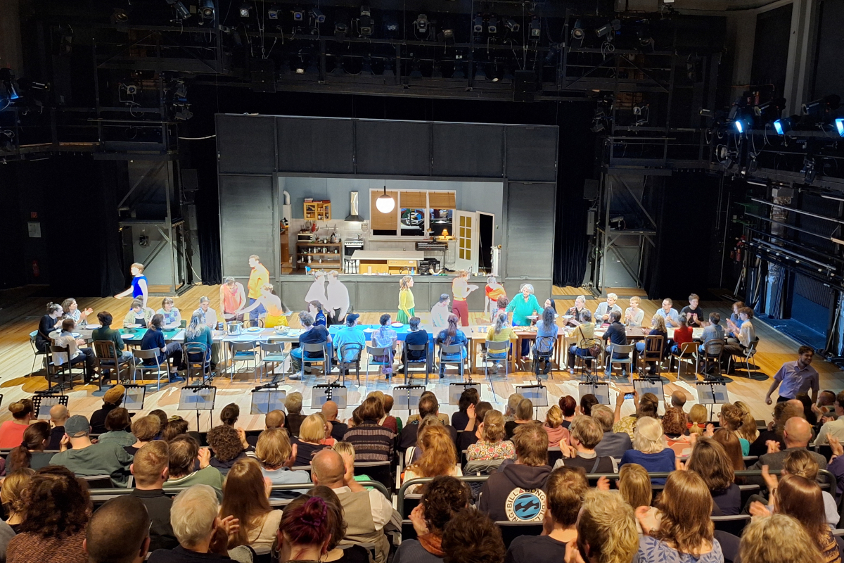 Schlussapplaus bei "Penthesile:a:s" samt Speisung fürs Publikum in Halle © chr