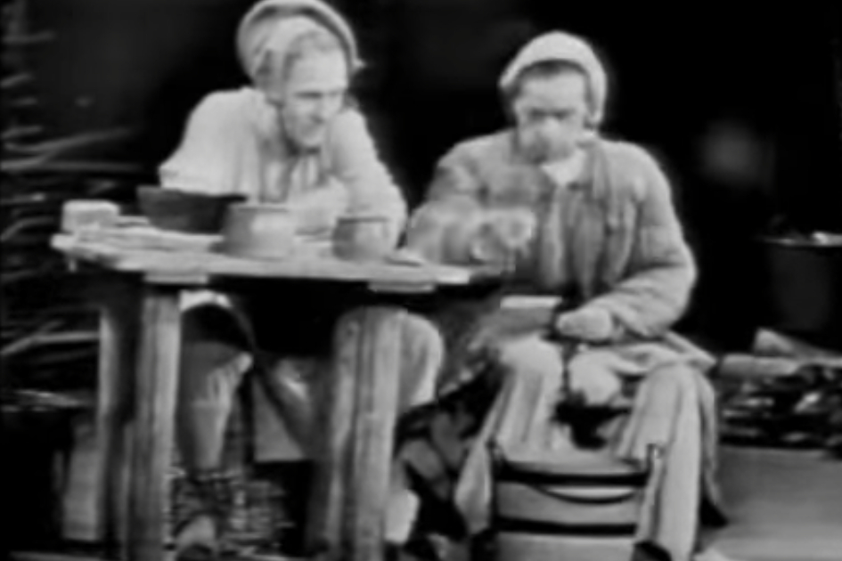 Helene Weigel rupft ein Hühnchen. In "Mutter Courage und ihre Kinder" von Bertolt Brecht | Screenshot