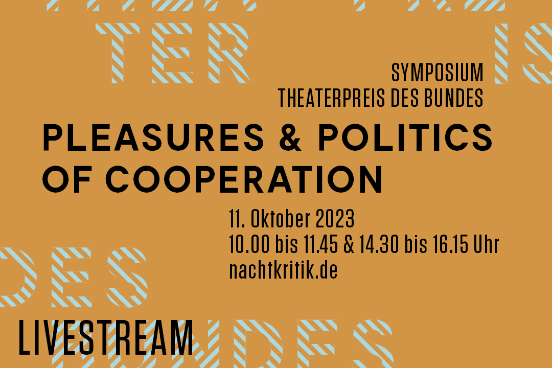 11. Oktober 2023. Das Symposium begleitend zum Theaterpreis des Bundes 2023 diskutiert auf bundesweiter und internationaler Ebene das transformative Potential kooperativer Arbeitsformen in den darstellenden Künsten. Welche Effekte können mittel- und langfristige Kooperationen für die Herstellung von Nachhaltigkeit, Augenhöhe und Multiperspektivität haben – und welche Herausforderungen bringen sie mit sich? Inwiefern begünstigen diese Parameter neue ästhetische und organisatorische Arbeitsformen?