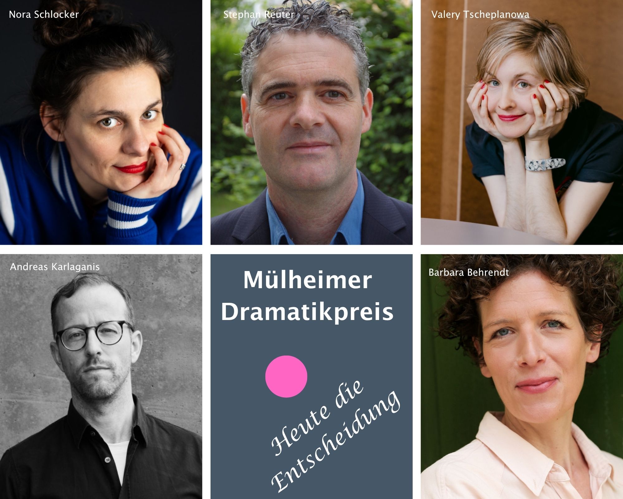 31. Mai 2025. Wer gewinnt den Mülheimer Dramatikpreis 2025? In öffentlicher Debatte diskutiert die Preisjury die sieben ausgewählten Stücke. Auf dem Podium die Jury: Barbara Behrendt, Andreas Karlaganis, Stephan Reuter, Nora Schlocker und Valery Tscheplanowa. Moderation: Janis El-Bira.