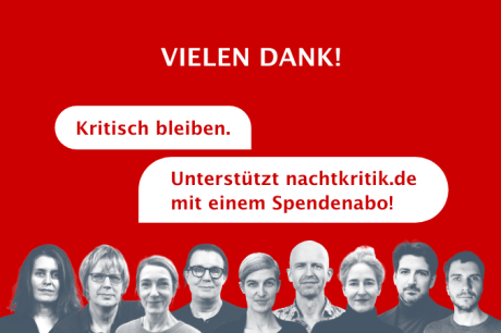 ich lese Euch seit Jahren, weil man einen guten Überblick über die Theaterproduktionen in Deutschland erhält; weil Ihr selbst-kritisch Eure Arbeit immer wieder reflektiert, so dass man stets weiß, warum Ihr so und nichts anders über eine Produktion schreibt. Eure Vorworte und Essays machen transparent, was Euch bewegt. Das gefällt mir. Leider gehöre ich nicht zu den 3,1 % deutscher Rentner, die eine Bruttorente in Höhe von 2100 € im Monat haben. Ich gehöre zum Mittel von 1650, daher kann ich meinen Spendenbetrag nicht so hoch halten, wie ich es gern möchte und es Euch zusteht.