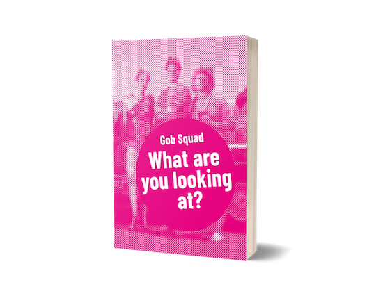 2. April 2020. Gob Squad, Schnauzen-Schwadron. So heißt keine Theatergruppe, so heißt vielleicht eine Band (tatsächlich existiert eine uninteressante dänische Hardrock-Gruppe dieses Namens). Aenne Quiñones beginnt entsprechend ihr Buch "What are you looking at?" über das britisch-deutsche Performancekollektiv mit einer Anekdote: 1992 seien Lou Bottomley, Sarah Thom, Adam King und Sean Patten aus Nottingham zum Glastonbury Festival gefahren, als Theaterstudent*innen hätten sie die Performance Stage mitbespielt und dafür freien Eintritt aufs Gelände gehabt, und noch auf der Autobahn sei ihnen klargeworden, dass man als Festivalact einen griffigen Gruppennamen bräuchte. Die Geburtsstunde Gob Squads, eine Schnapsidee. Schön.