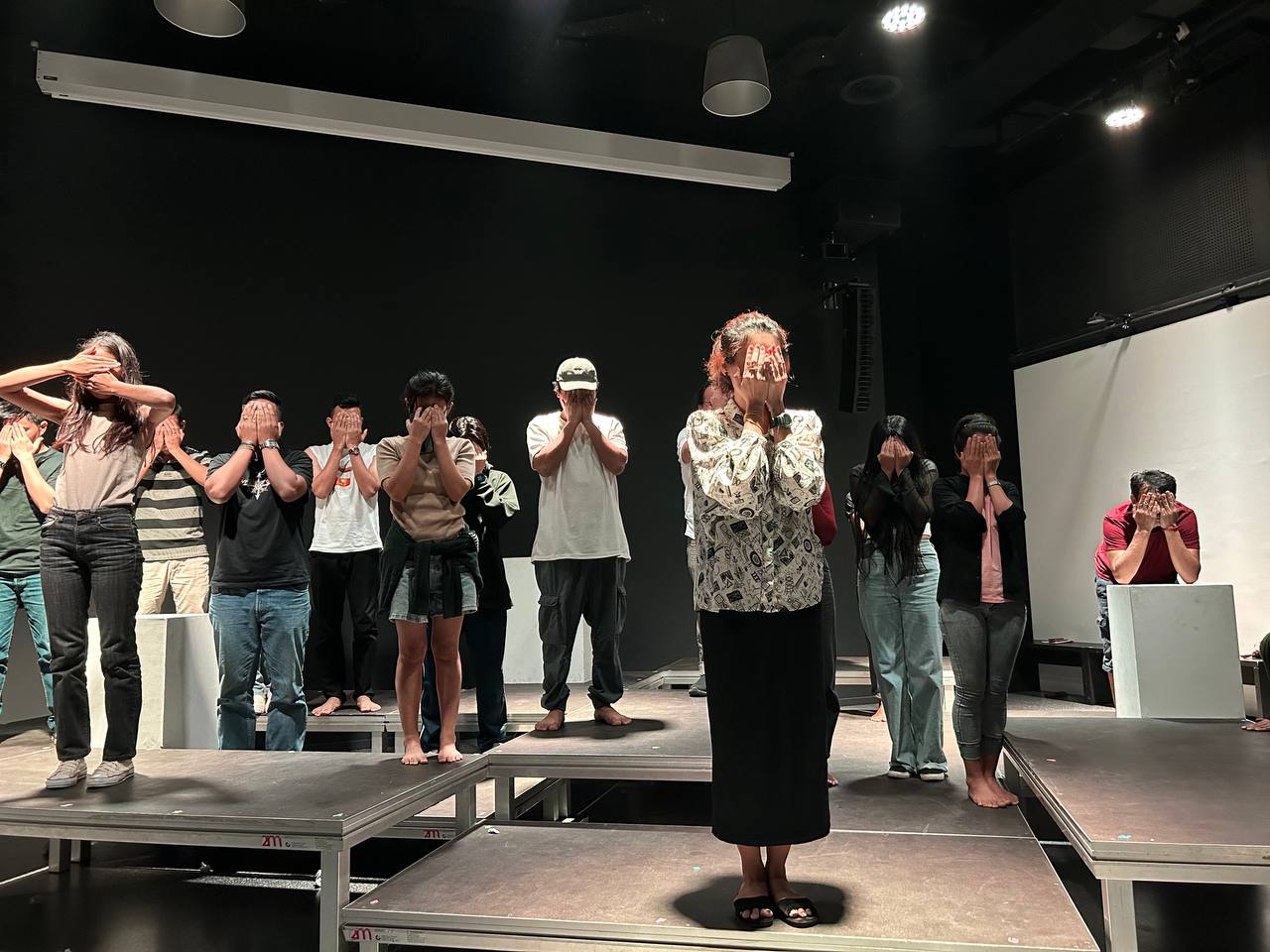 Am kommenden Tag beginnt der Workshop. Es sind neunzehn Teilnehmer:innen: eine bunte Mischung aus Performer:innen, Filmschaffenden, Autor:innen, teilweise aus Theaterkollektiven, eines das seit seiner Gründung 2009 seine Aufführungen hauptsächlich an Kinder und Jugendliche richtetet oder ein anderes, das sich bei einer Initiative am British Council formiert und Aufklärungsarbeit für Themen wie HIV/AIDS, Menschenhandel, Gleichberechtigung und Femizide künstlerisch vor allem auch in ländliche Regionen gebracht hat. Ein 2000 geborener Streetdancer und Kurator ist dabei, Puppenspieler, einige sind noch Studierende. Wobei es keine Ausbildung für Theaterschaffende gibt. Der Weg führt über die bildende Kunst, und es gibt einzelne Lehrer, die Schüler:innen aufnehmen und sehr traditionelle Theateransätze vermitteln. Der prominenteste Teilnehmer ist Dichter, Performer, Zeichner und studierter Ingenieur mit Exilerfahrung: Mit der beginnenden Zensur zog er nach Thailand und blieb dort sieben Jahre. Nun ist er wieder da und sagt: "Ich bleibe hier!" Die anderen nicken. Sie alle haben Kolleg:innen, Freund:innen und Familienmitglieder verloren, aber sie möchten in Myanmar bleiben und sich nicht vertreiben lassen.