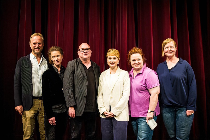 V.l.n.r. Intendant Georg Heckel, Helga Gemsa, Referentin Gastspielmarkt, Chefdramaturg Reinar Ortmann, Anna Neudert, Dramaturgin und Teamleitung Öffentlichkeitsarbeit, Orchestergeschäftsführerin Brigitte Harten und Natascha Mamier als neue Leiterin des Jungen Theaters © Lina Pris