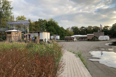 15. Oktober 2022. Fünf nach Zwölf ist es auf der Klimakatastrophenuhr. Was kann uns noch retten? Der Themenpark "reEDOcate me!" bringt das Japan der Edo-Zeit ins Spiel, als Vorbild in Sachen Kreislaufwirtschaft und ressourcenschonender Lebensweise. Welchen Weg weist der künstlerische Parcours über das Gelände der Floating University Berlin – in die Vergangenheit oder in die Zukunft?