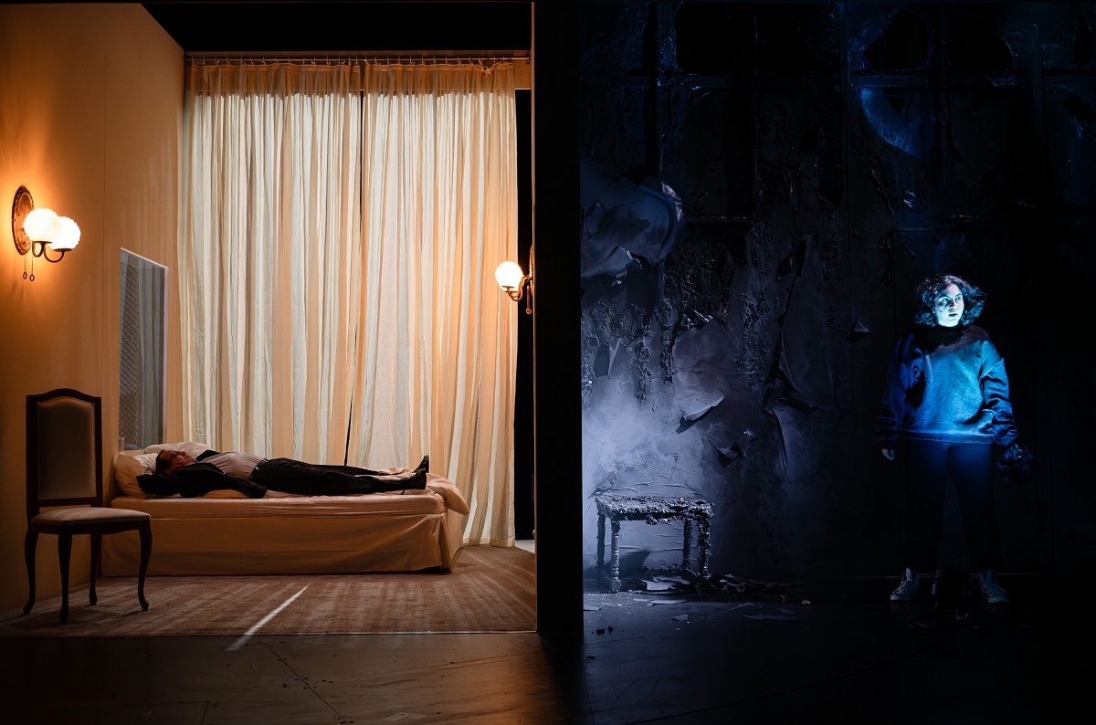 Verdoppelte Bilder im Bühnenbild von Irina Schicketanz und den Video-Projektionen von Karnik Gregorian © Maximilian Borchardt