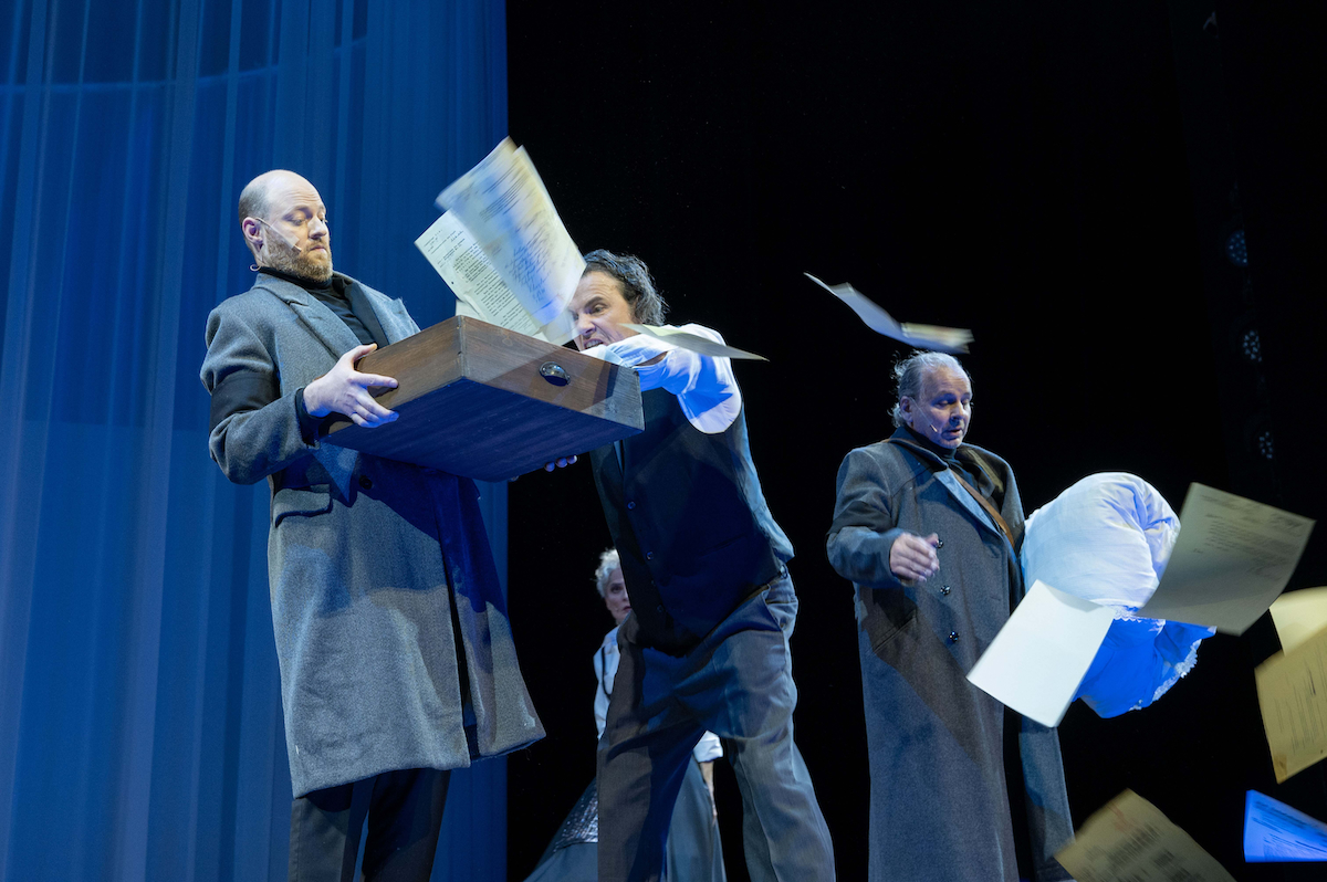 Reichen Requisiten an: Maurizio Miksch und Gunther Nickles, in ihrer Mitte Frank Röder © Kerstin Schomburg