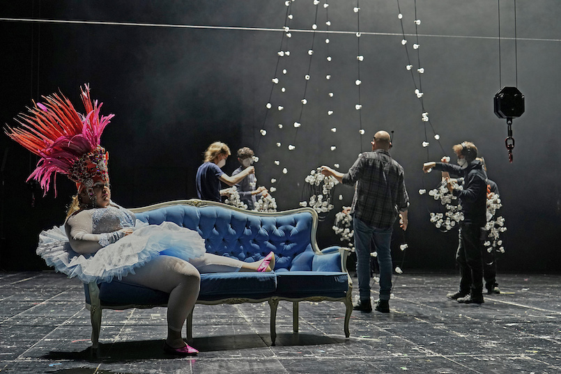 3. April 2022. Alles auf dieser Bühne hat eine Geschichte. Der Smoking, den Jan-Christoph Gockel trägt, stammt aus Luc Percevals legendärem "Othello". Behauptet zumindest Gockel, der in dem von ihm selbst inszenierten Abend zu Beginn mit ein paar Gegenständen bekannt macht. Der rote Samtvorhang: aus Dieter Dorns "Faust". Der Fisch, unter dem der Regisseur fast zusammenbricht: Aus einer Castorf-Inszenierung an der Bayerischen Staatsoper – und obendrein kaputt. Geht nach Gebrauch repariert retour an den Spender.