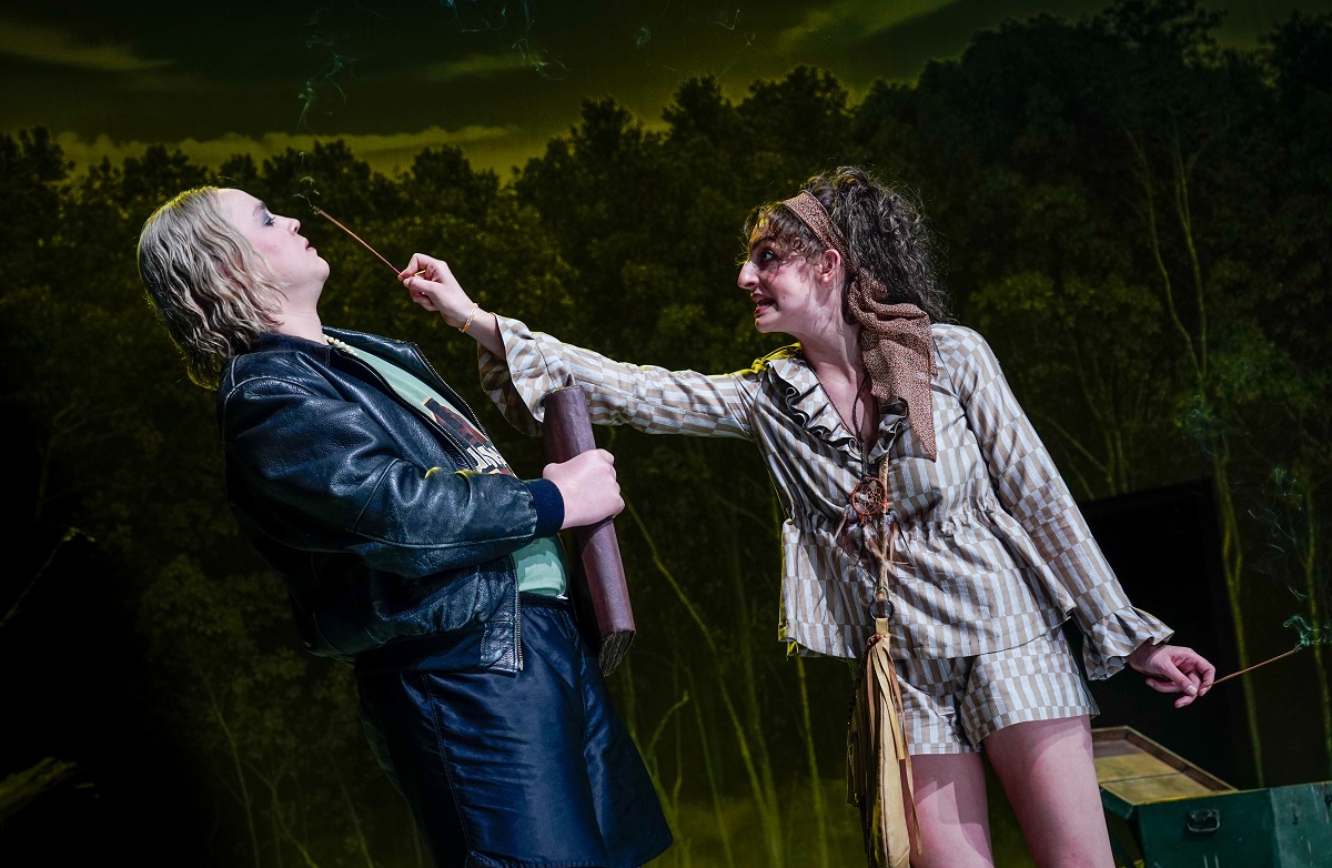 Hält Marlene Markt mutig und forsch dagegen? Oder übererfüllt sie das Klischee? Wenn sie mit tiefergelegter Stimme und Körpermitte einen Räucherstäbchentanz gegen böse Geister aufführt, vergisst man jedenfalls für einen Moment, wie amerikanisch das alles ist und trotz punktueller Anspielungen auf Oktoberfest und Co. auch bleibt. In seiner Thematik. In seiner Übertreibung. In seiner Glätte. In seiner krawalligen Selbstzerstörungslust und bis ins Zikadenzirpen hinein. Doch wenigstens das haben Stückl und sein Team dezent heruntergedimmt.