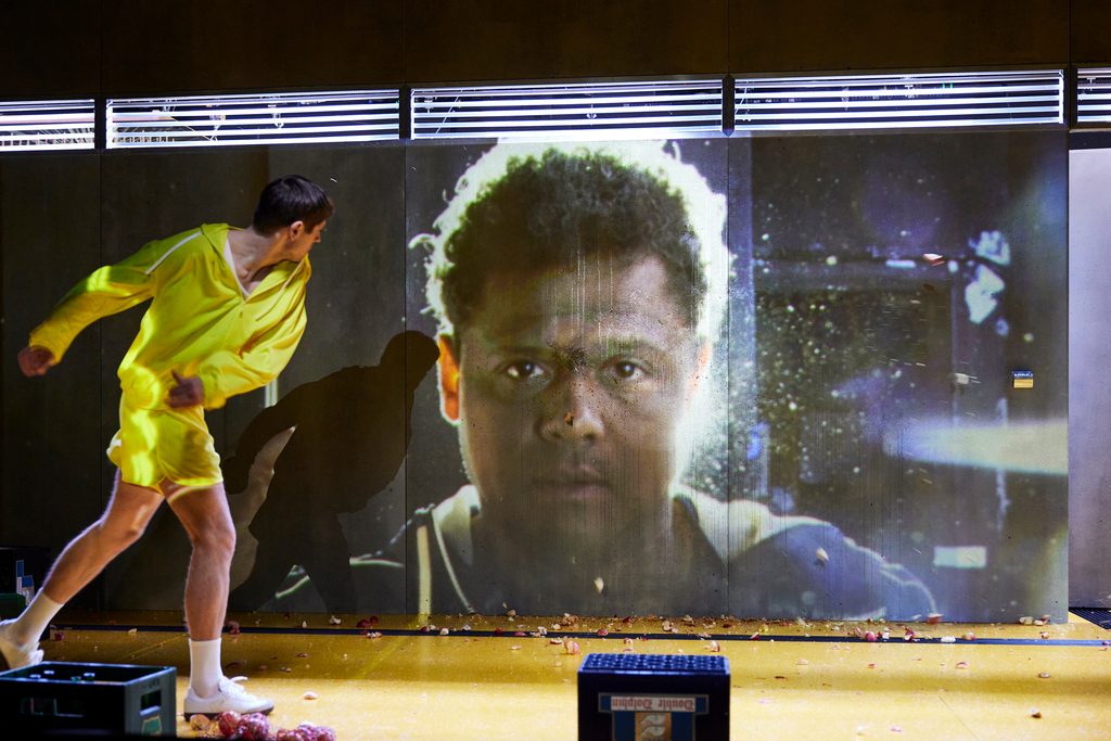 "Ave Joost" heißt die erste Arbeit von Caren Jeß, die am Nürnberger Staatstheater aufgeführt wird, eine Auftragsarbeit, inszeniert von Branko Janack. Ein Stück über Klasse hatten sich die Nürnberger gewünscht, aber wenn man das nicht weiß, und auch sonst, wird lange nichts klar an dieser Situation, in die man hier hineingesetzt wurde: Drei Männer werfen mit Äpfeln nach einer Mauer, das Obst zerschmettert wirkungsvoll, was ihren Schusswaffengebrauch symbolisiert. Und mit jedem Treffer donnert die Anlage und schickt noch ein Feedback-Fiepen nach.