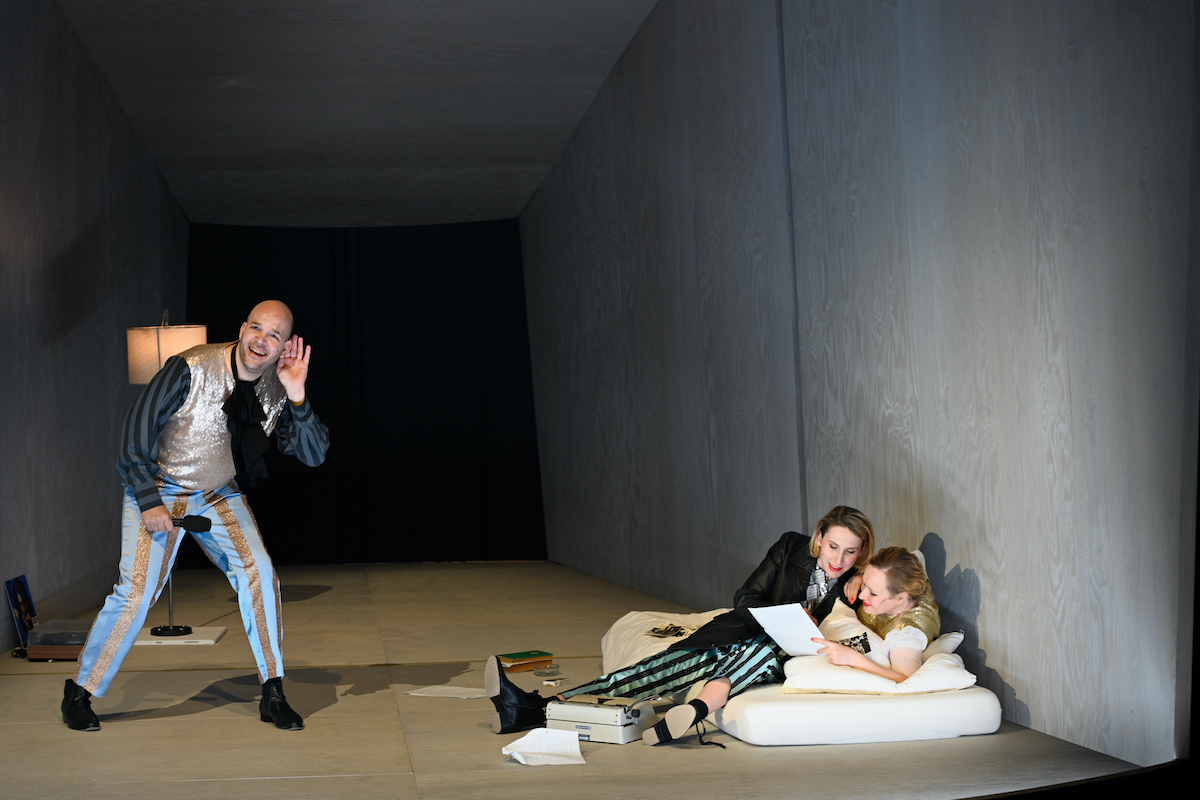 Dessen übergriffiges wie altkluges Westsplaining klingt fast ein halbes Jahrhundert später nachgesprochen sehr komisch, aber auch ziemlich peinlich. Felix Goeser als Troller, Mareike Breykirch als Brasch und Anja Schneider als Katharina Thalbach spielen Clowns der Geschichte, die saftige Klischees zum Besten geben, die das Bild dieses Dichters bis heute prägen, der immer wieder Bücher, Texte und Filme provozierte. Zuletzt Andreas Kleinerts klischeeschwangeres Drama "Lieber Thomas" von 2021.