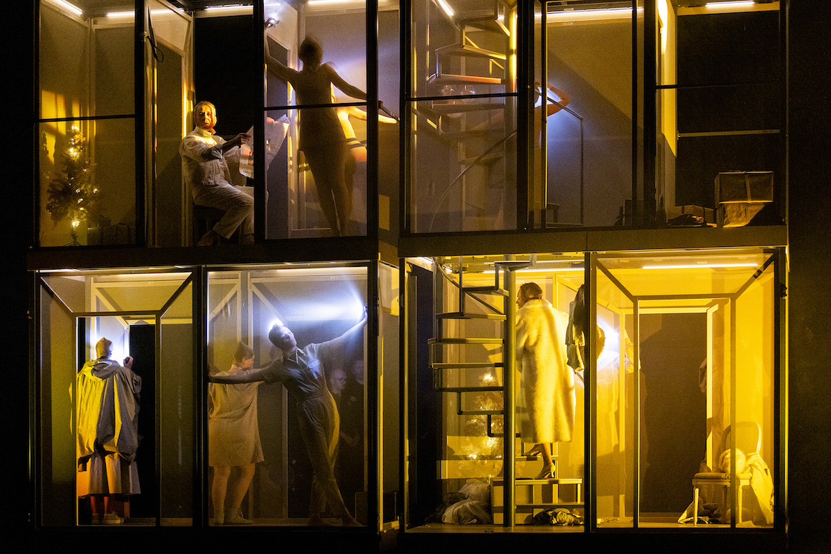 28. Januar 2024. Hier geht es um ein Haus. Und dieses Haus aus Sivan Ben Yishais kürzlich in Hannover uraufgeführtem Stück "Nora oder Wie man das Herrenhaus kompostiert" steht in Anica Tomićs Inszenierung in den Kammerspielen des Deutschen Theaters Berlin auch auf der Bühne. Es hat bodentiefe Fenster. Eigentlich besteht es nur aus Fenstern, so dass sich hier kein Unheil und kein historischer Abgrund verstecken kann, ohne vom aufmerksamen Zuschauer:innenauge entdeckt zu werden.