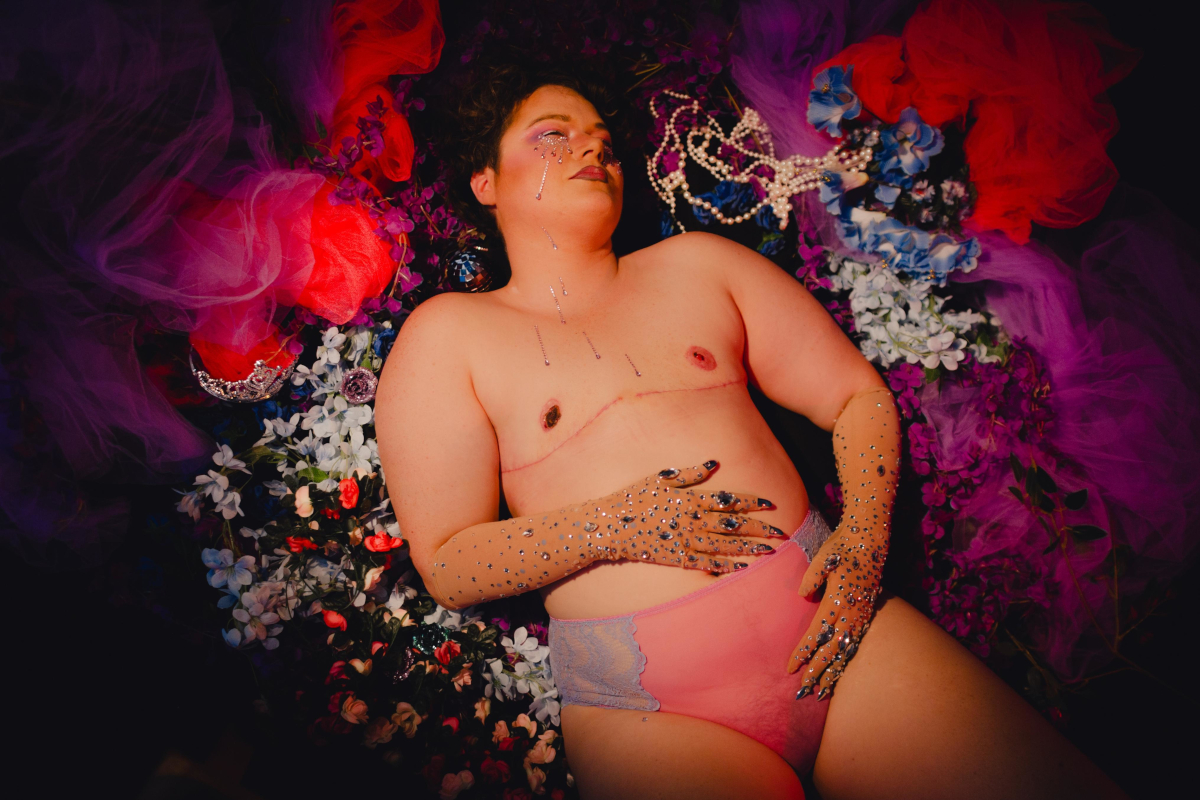 CHICKS* sind bekannt für ihre barrierearmen, queeren Performances und Workshops. Mit "Mastektomie. Ein bittersüßes Abschiedslied" feiern sie den Abschied von Marietheres Jesses Brüsten. Dieser Abschied soll als Ritual zelebriert werden und zugleich die Frage aufwerfen, wie eine Mastektomie – also die vollständige oder teilweise chirurgische Entfernung des Brustgewebes – sowohl Brustkrebsprophylaxe als auch Transitionserfahrung sein kann. Denn Jesse hat eine Proteinmutation, die das Risiko für eine Brustkrebserkrankung steigert, und führte die Mastektomie zugleich als Teil der eigenen Transition durch. Es sei nicht so leicht, überhaupt Ärzt*innen zu finden, die sich mit Trans-sein, Krebsvorsorge und Nichtbinariät zugleich auskennen, erzählt Jesse.