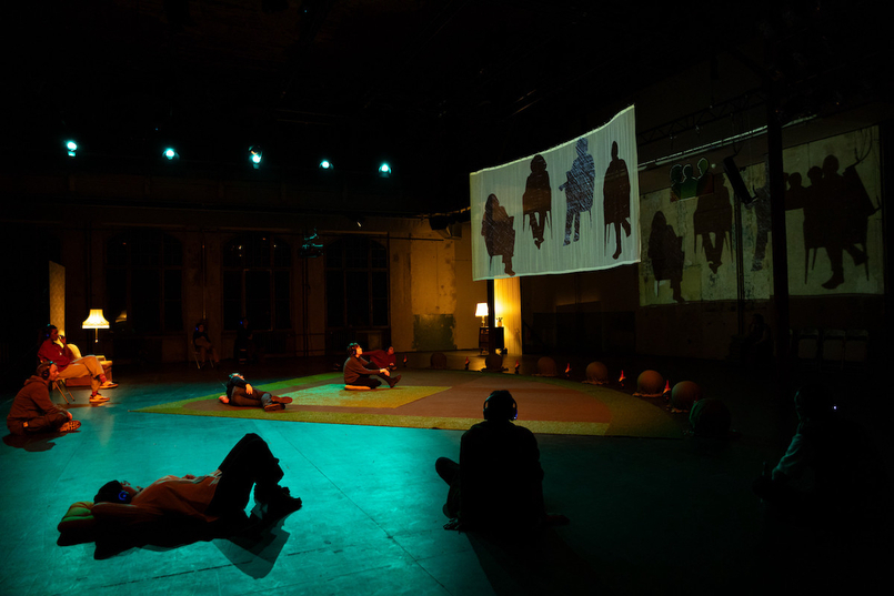 Entspanntes Niederlassen zum Hören, Lernen und Nachvollziehen: Simone Dede Ayivis Installation in den Sophiensaelen © Mayra Wallraff