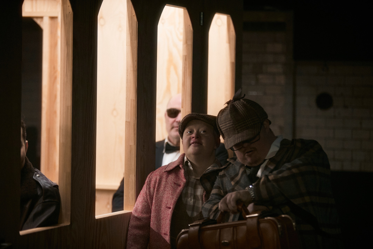 Nur echt mit Sherlock-Mütze: Das Ensemble mit Zora Schemm und Christian Behrend ermittelt © Phillip Zwanzig