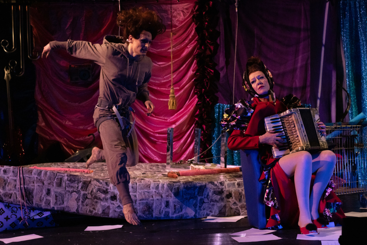 Meo Wulf, in Personalunion Autor*in, Regisseur*in, Drag-Artist*in, Choreograf*in und Hauptdarsteller*in, nutzt das Stück für hübsch queere 80er-Jahre-Playbacks, zunehmend akrobatische Tanzeinlagen, Herumgealbere mit akustischen Loops und ein bisschen Kacki Horror Show. "Halt's Maul, das ist mein Stück", fährt Conni seine Partnerin an, und das ist sicherlich der wahrste Satz des Abends.