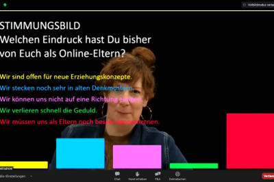 Berlin / Online, 8. Dezember 2020. Ziemlich schnell wird klar, dass man durchschnittlichstes Mittelmaß ist. Hätte man nämlich Kinder, dann würden die wohl in einer Großstadt aufwachsen, in einem sozial heterogenen Viertel aber in einem mehrheitlich weißen Umfeld, und das Milieu wäre eines, das man als "sozialökologisch" bezeichnen könnte. Und tatsächlich: Die Kinder der meisten Zuschauer*innen dürften in vergleichbaren Verhältnissen aufwachsen. Interrobang haben mit dem "Empowerment nach Rousseau" "Familiodrom" eine ziemlich homogene Blase aus dem heterogenen Stadtteil in die Berliner Sophiensæle gelockt. Beziehungsweise ins Internet, wo "Familiodrom" als immersive Zoom-Performance stattfindet, aus Gründen des Pandemieschutzes, aber auch, weil das Netz hier strukturbildendes Element ist: Es geht darum, ein Kind als "Kollektiveltern" zu erziehen, und das Kollektiv schließt sich online zusammen.