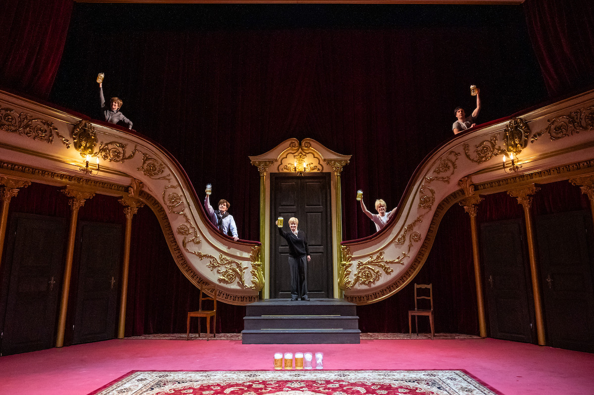 Verbindungs-Party mit alten Herren? Achtung, hier werden bald Gehirne verpflanzt: Philipp Löhles "Das deutsche Haus" © Thomas Müller