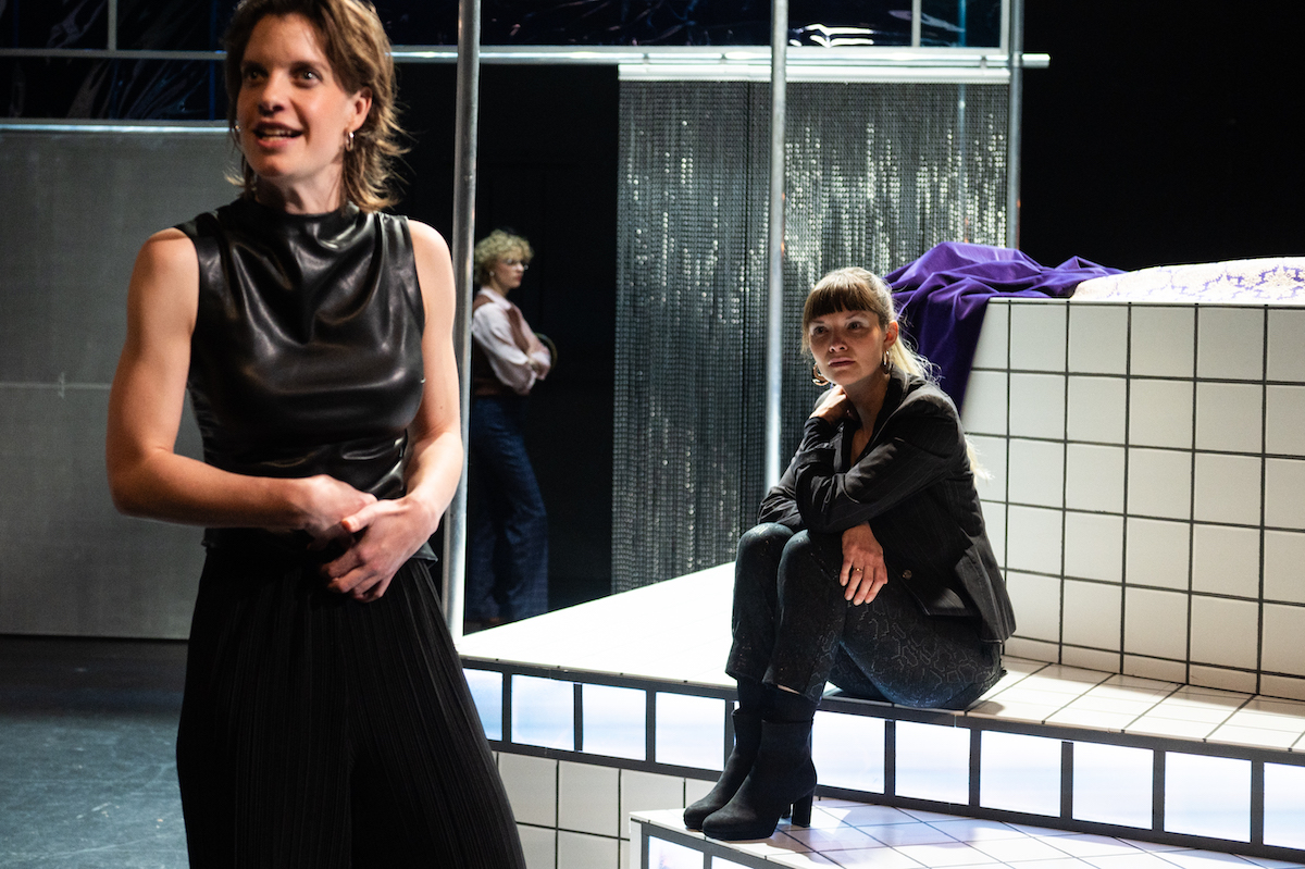 Therapie im Leichenschauhaus: Yana Robin La Baume, Lou von Gündell und Nathalie Thiede in "Die Nacht als Laurier erwachte" © Anton Säckl
