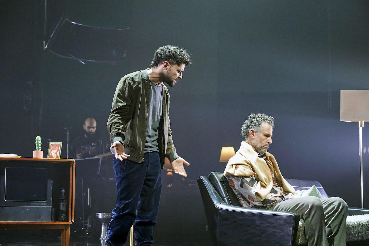 Konsequenterweise ist auch die Bühne zu einem archivarischen Raum geworden. Bühnenbildnerin Alissa Kolbusch hat Generationen von Möbelstücken verteilt, die für die Generationen der Migranten stehen. Elyas' Vater / Onkel arbeiteten bei der Automarke Ford, sie waren sogar bei den ersten wilden Streiks dabei, also wird ein Auto kopfüber langsam von dem Bühnenhimmel abgeseilt, bis die Stoßstange fast den Bühnenboden berührt und Elyas seine Verzweiflung und seinen Zorn über Familie und Welt an der Karosserie mit einem Baseballschläger loswerden kann.