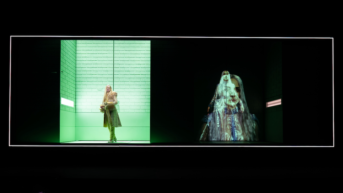 Gegenwart überblendet Vergangenheit: Jirka Zett als Hettore Gonzaga, Prinz von Guastalla, und Maja Schöne als Emilia © Krafft Angerer