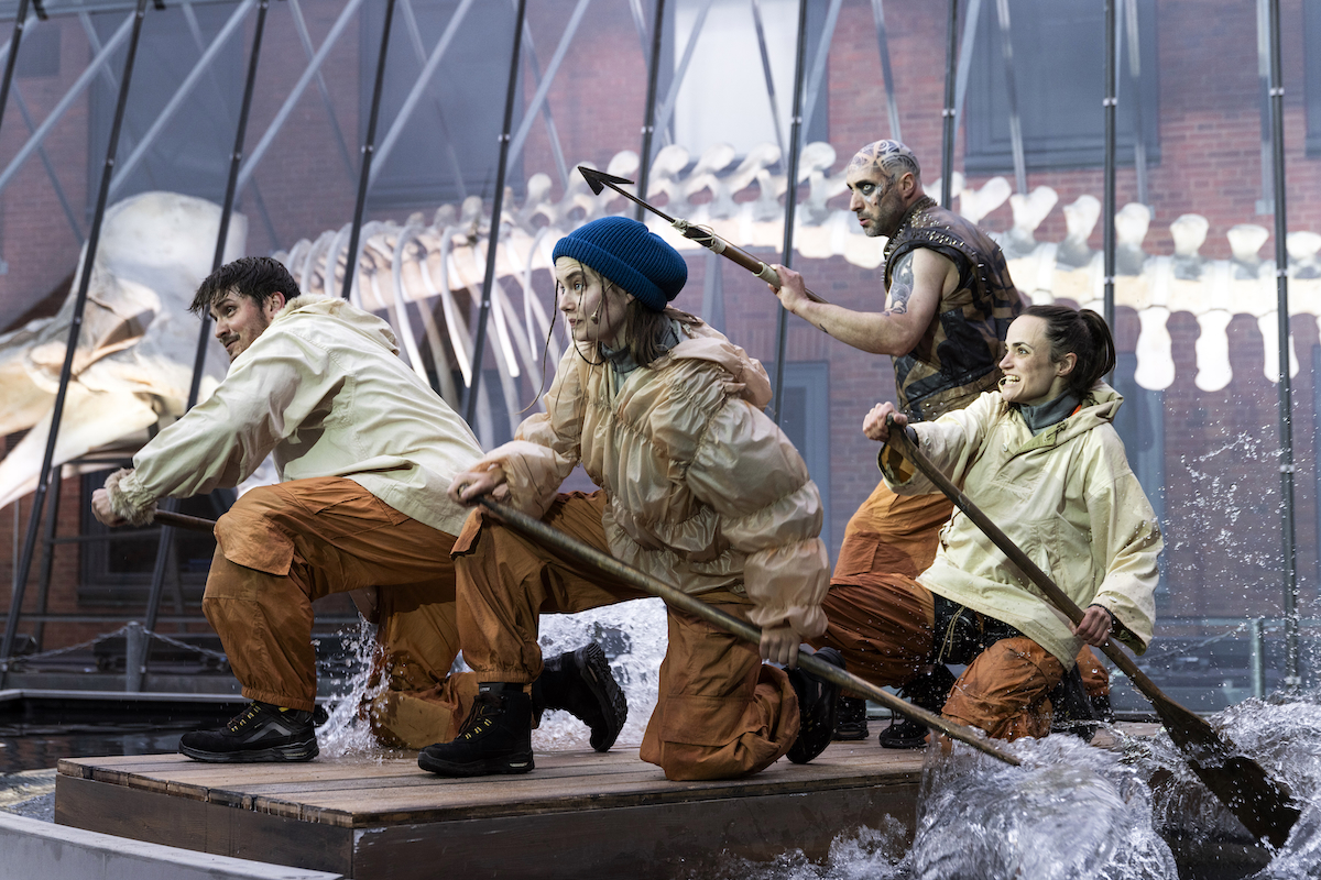 Bereit zum Walfang-Abenteuer: Luisa Böse (Junger Ismael), Henning Sembritzki (Queequeg), Sven Simon (Fedallah), Heiner Kock (Stubb), Lilly Gropper (Flesk) © Isabel Machado Rios