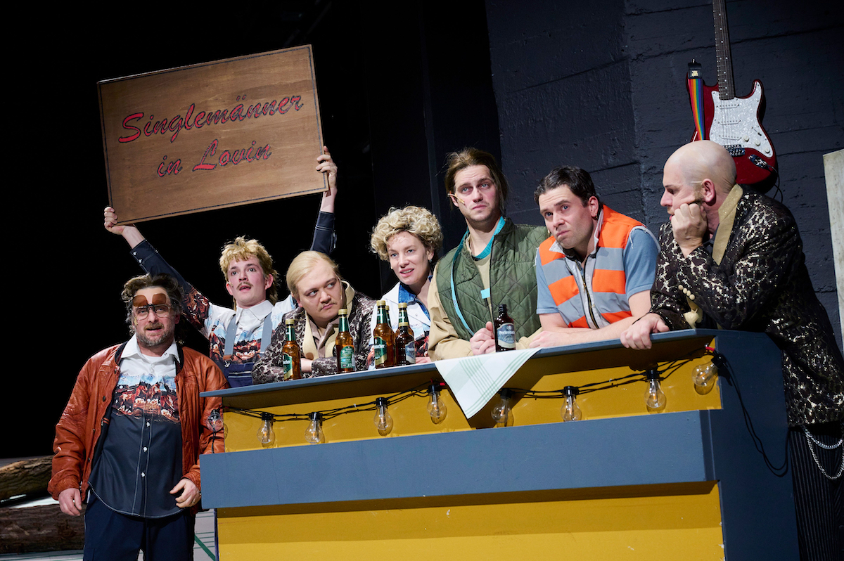 3. Dezember 2023. Im Dorf gibt es nur noch eine Frau, und die ist schon verheiratet. Dirk Lauckes neues Stück nimmt die abgehängten Singlemänner auf dem Land aufs Korn. Lars-Ole Walburg hat die Uraufführung inszeniert – mit musikalischem Schmiss und starkem Ensemble.