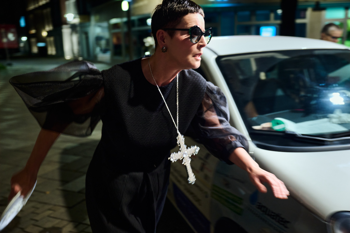 Ronja Oehler als Mia im Auto spielt unglaublich intensiv und steigert sich bis zur Hysterie; Gesa Schermuly wiederum verleiht ihrer Maia eine diabolische Keckheit. Und Christina Huckle ist eine Naturgewalt. Überhaupt ist die Spielwucht der fünf Schauspieler*innen die reine Freude: da wird geseufzt, gekeift, gewimmert, und der demente Opa (witzig: Thomas Wolff) kommentiert ungerührt. Viel Aktion und Slapstick auf und vor der Bühne, Screwball-reife Dialoge, witzige Ideen und ein irres Tempo machen den Abend trotz einer gewissen Gedankenschwere zu einer großartigen Unterhaltung. Das ist Vollblut-Theater. Tschüss, KI.